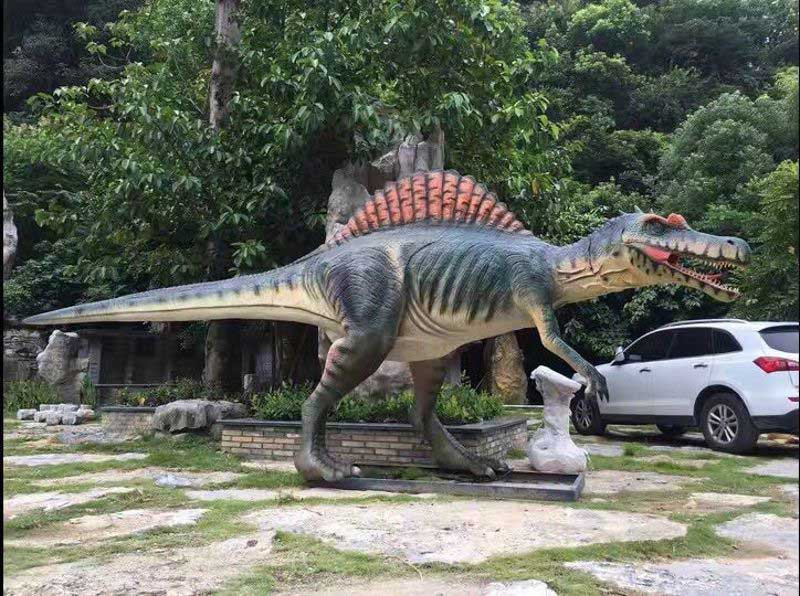 仿真恐龙制作大型肉食性恐龙大都单独活动,依靠自己的力量捕食中到大型的植食性恐龙。霸王龙作为肉食性恐龙演化的顶点,是典型的进步的大型肉食性恐龙。霸王龙常采取伏击的办法,在猎物经常出没的地方隐蔽起来,瞅准机会突然窜出对猎物发动猛烈袭击,用身体将猎物扑倒在地,并且张开布满匕首状牙齿的血盆大口使劲撕咬对方的皮肉,咬断对方的脖子,必要时再踏上一支脚……,一边喘着粗气,一边撕裂吞食猎物大块的肉,美美地吃上一顿。